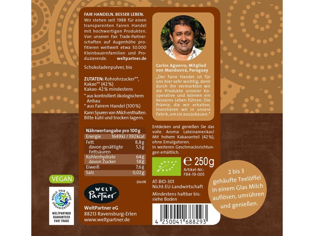 V roce 1988 začínali jako společnost DWP – partner třetího světa, ale v současnosti jsou WeltPartner – světový partnerem. Mohou se chlubit 60 partnery v zemích třetího světa, přibližně 1550 produkty a podporou 50 000 lidí. Dávají si záležet na společenské odpovědnosti – fair trade, CO2 neutrální přeprava, integrační pracovní pozice v Německu, podpora Organizace na ochranu dětí na Filipínách.