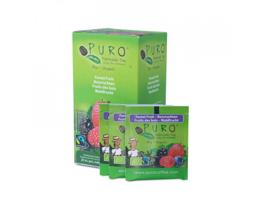 Černý čaj s příchutí lesního ovoce z kolekce jakostních čajů Puro. Jednotlivě balené sáčky s atraktivním designem. Skvěle chutná, krásně vypadá - ideální volba pro gastro provozy i domácí servírování.
