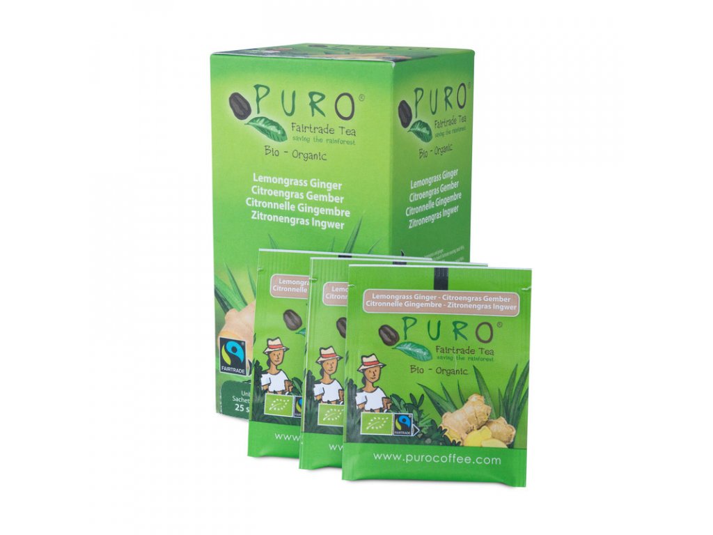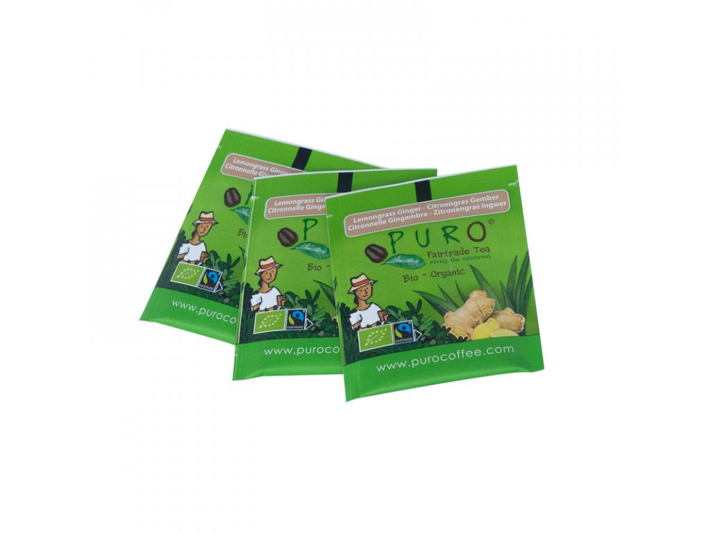 Zelený čaj s osvěžující příchutí citrónové trávy a zázvoru. Z kolekce jakostních čajů Puro. Jednotlivě balené sáčky s atraktivním designem. Skvěle chutná, krásně vypadá - ideální volba pro gastro provozy i domácí servírování.